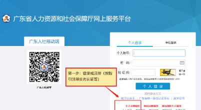 第一步:注册或登录“广东省人力资源和社会保障厅网上服务平台”官网,如下图所示;
