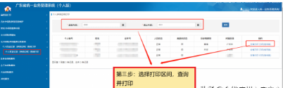 第三步:进入【社会保险参保证明(个人)】打印页面,选择起始年度和截止年度点击查询,选择对应的记录点击【打印】,可打印个人参保证明。如下图所示;